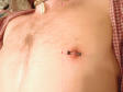 einem Ende aus der Haut ragt.Die Risiken eines Dermal